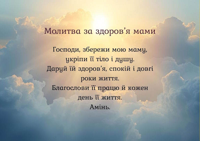 - Господи, дай моїй мамі здоров’я та спокій. Благослови її день і ніч.